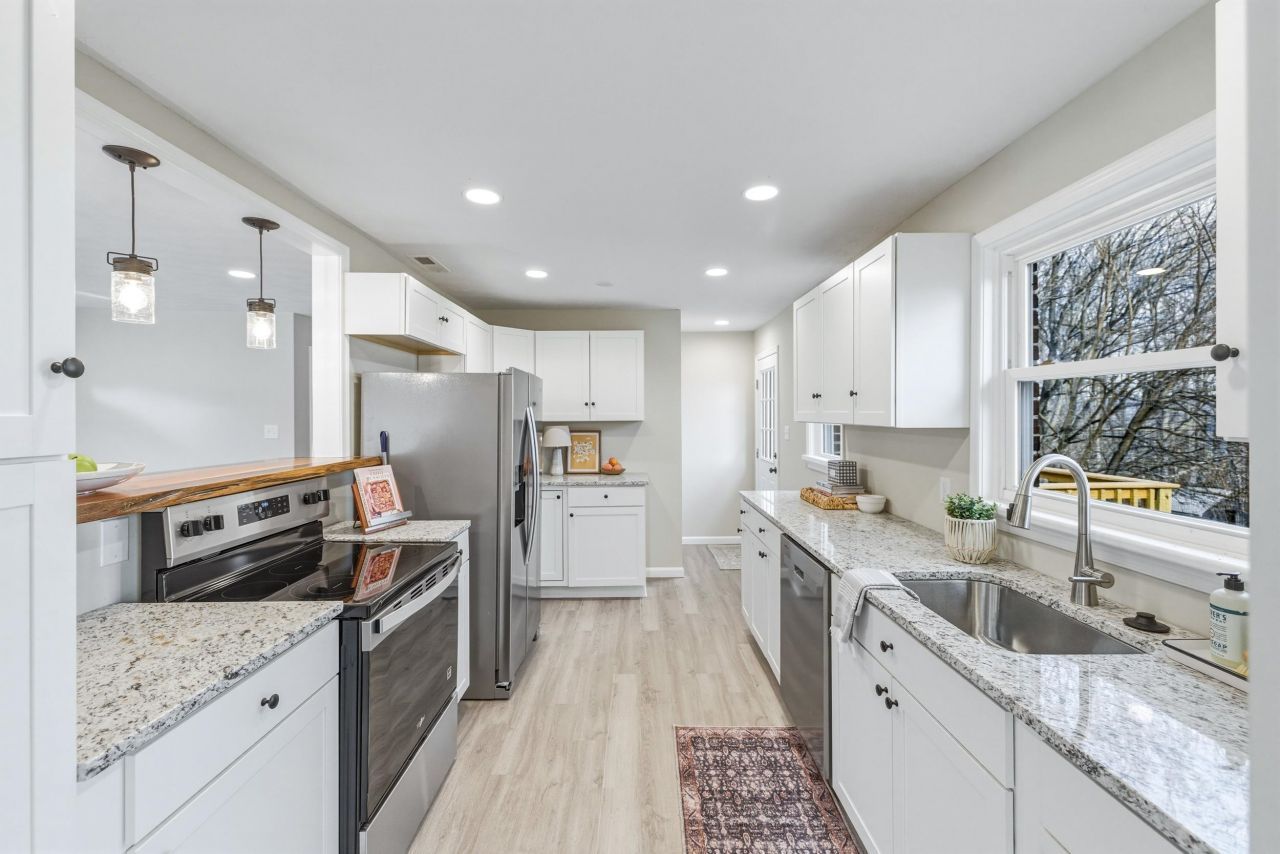 Welcome to 1045 Smithland Road, where timeless character meets modern comfort. This fully renovated brick home blends the charm of its original 1950s design with thoughtful updates throughout. Expanded to offer over 2,500 square feet of living space, this one-level home features 4 bedrooms, 3 full bathrooms, and a fully finished basement?providing flexibility for everyday living, entertaining, or guests. Recent improvements include a new roof, freshly paved driveway, luxury vinyl plank flooring throughout, stainless steel kitchen appliances, and granite countertops in both the kitchen and bathrooms. Comfort is enhanced year-round with a new heat pump and additional mini-split system Step outside to enjoy mountain and pastoral views from the newly constructed deck, or unwind in the privacy of a backyard bordered by mature woods. Offering the convenience of being located within Harrisonburg's city limits, this home is ideally located near shopping, dining, schools, Sentara RMH, and provides easy access to Interstate 81. Downtown Harrisonburg and James Madison University are both just a short 10-minute drive away. Don't miss this rare opportunity, schedule your showing today!