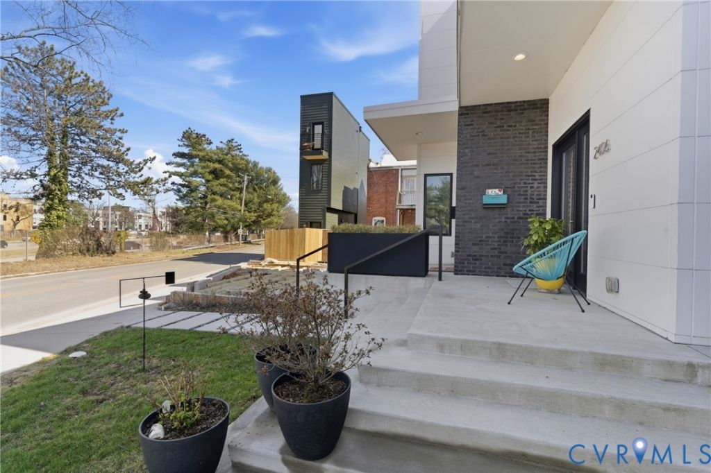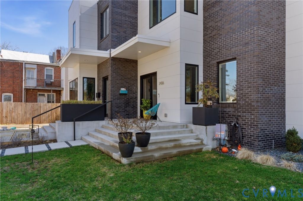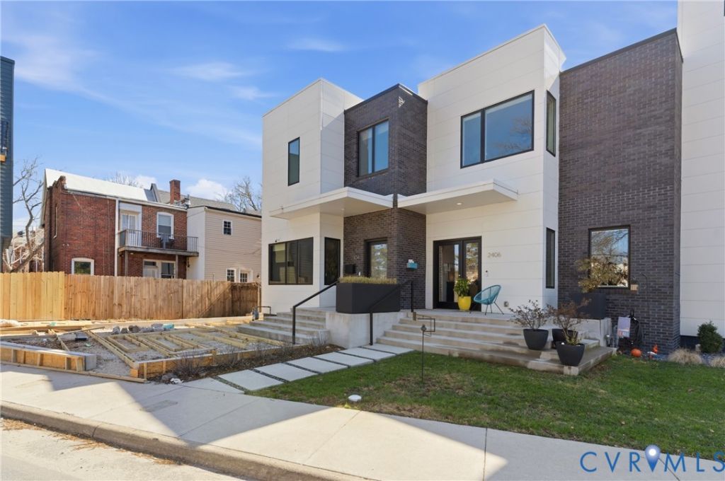 Welcome to 2406 Grayland Ave where modern design comes together perfectly through clean lines, flat rooflines, and crisp light panel siding alongside dark brick creating a stunning place to call home. Inside, the open-concept first floor blends style and function with wide-plank hardwood floors, 10ft ceilings on the first floor, recessed lighting, custom shades, and abundant natural light from the many well-placed windows. The living area is anchored by a stunning full-height tile surround gas fireplace and custom asymmetrical shelving, while the open staircase with wood treads and a modern metal railing adds an extra architectural element. The kitchen is equally impressive, featuring flat-panel cabinetry with beautiful burled walnut flat front cabinets below with crisp white uppers, Quartz countertops, a contemporary tile backsplash flanking a stunning rectangular picture window, and a deep undermount sink with a gooseneck faucet. The oversized island offers seating, additional walnut cabinetry with pull-out shelving, and a gas cooktop with a statement glass-and-stainless range hood above. A convenient half bath and additional storage round out the first floor. Upstairs, a skylit hallway enhances the home's airy feel along with 9ft ceilings! Two bedrooms with custom closets share a stylish Jack-And-Jill bath while the primary suite offers its own custom walk-in closet, space for additional seating, and a well-appointed ensuite-creating a comfortable, private retreat. Off the kitchen is a covered porch with lighted ceiling fan and a custom roll down shade for sunny days and a custom built locked storage for a grill, coolers, gardening tools and more underneath-extending the home's modern design outdoors. Ideally located just steps from Fountain Lake in Byrd Park and minutes to RVA's Fan District, Carytown, Maymont and the James River, this home offers unbeatable access to neighborhood amenities including restaurants, shopping, tennis courts, and scenic walking and biking trails.