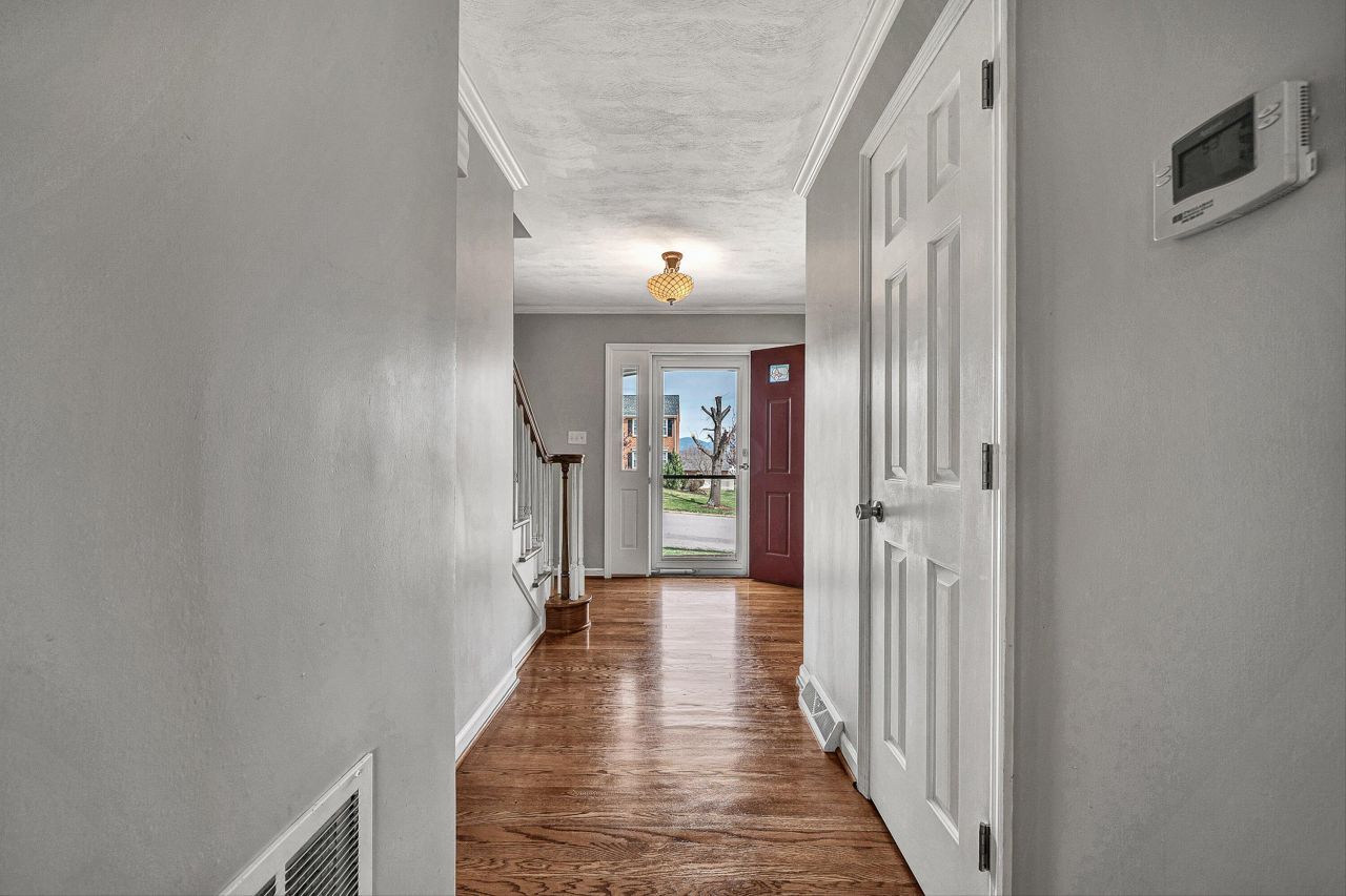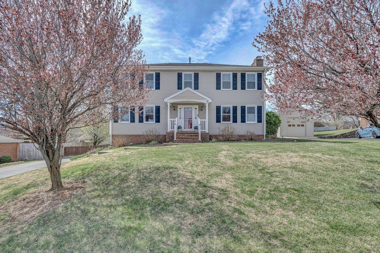 Life in the desirable Karen Hills neighborhood is easy to imagine in this beautifully maintained two-story Colonial offering the space, comfort, and updates today's buyers are seeking. Hardwood floors and a bright, inviting layout welcome you inside. The updated eat-in kitchen features granite countertops, stainless appliances, and a center island--perfect for casual meals, morning coffee, or helping with homework. A cozy gas log fireplace anchors the living room, while the enclosed sunroom offers a bright spot to enjoy views of the backyard. Step outside to an oversized composite deck overlooking a flat, fully fenced yard with beautiful views of 12 O'clock Knob--perfect for outdoor dining, playtime, or relaxing evenings. Upstairs, the primary suite features a remodeled bath with double